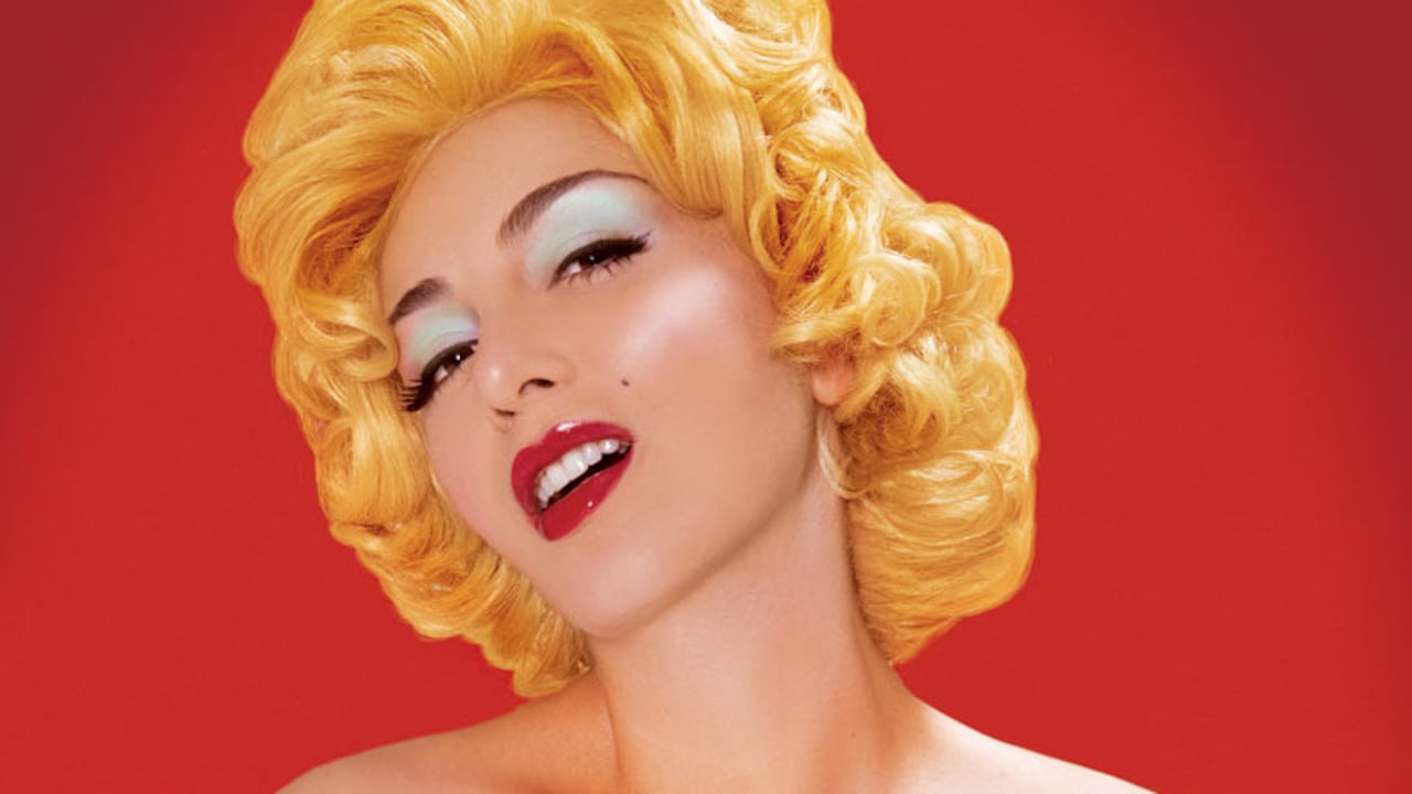 La actriz colombiana Marilyn Patiño es quien interpreta a la actriz de cine, cantante y modelo estadounidense que aparece en la obra de este artista plástico.