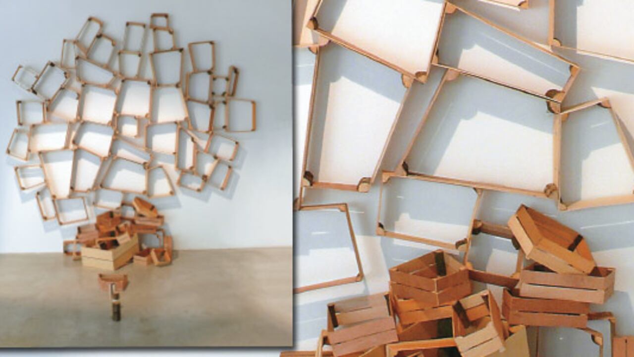 Peter Marigold es un diseñador británico que va por ahí cortando la madera que le gusta y luego la usa en sus diseños. Para esta librería usó partes de un mismo tronco de madera y los unió con tablas como le iban saliendo. Su principio es básico: como todos los ángulos de los pedazos de madera que cortó suman un total de 360 grados, estos pueden ser intercambiados para formar cualquier figura. Así, logró hacer piezas irrepetibles y que cada persona puede distribuir como mejor le parezca.