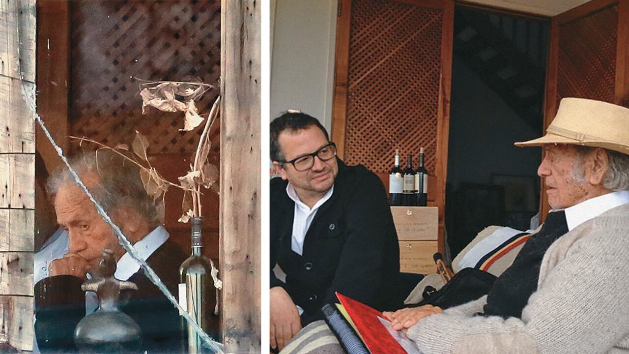 Durante mi última visita a Las Cruces, el antipoeta acababa de celebrar sus 100 años. Lo visitó la presidenta de la república, afuera de su casa le colgaron infinidad de mensajes, conjuntos folclóricos de la zona bailaron cien pies de cueca en su honor, y ese 5 de septiembre al mediodía en punto, entre otros muchos homenajes, se leyó en todos los liceos, radios y canales de televisión su poema El hombre imaginario. Michelle Bachelet lo hizo desde el Palacio de la Moneda, y horas más tarde, sobre la fachada, fueron proyectadas escenas de su vida y reproducida su voz, mientras el Tololo (nieto mayor) tocaba el piano frente al gobierno en pleno y millares de ciudadanos. Él, sin embargo, no participó en nada. No dio la cara. No permitió siquiera que lo filmaran ni que le sacaran fotografías. La que aquí aparece se la saqué escondido. Considera que ya no está para figuraciones, aunque no es difícil adivinar una cierta coquetería en su reserva.