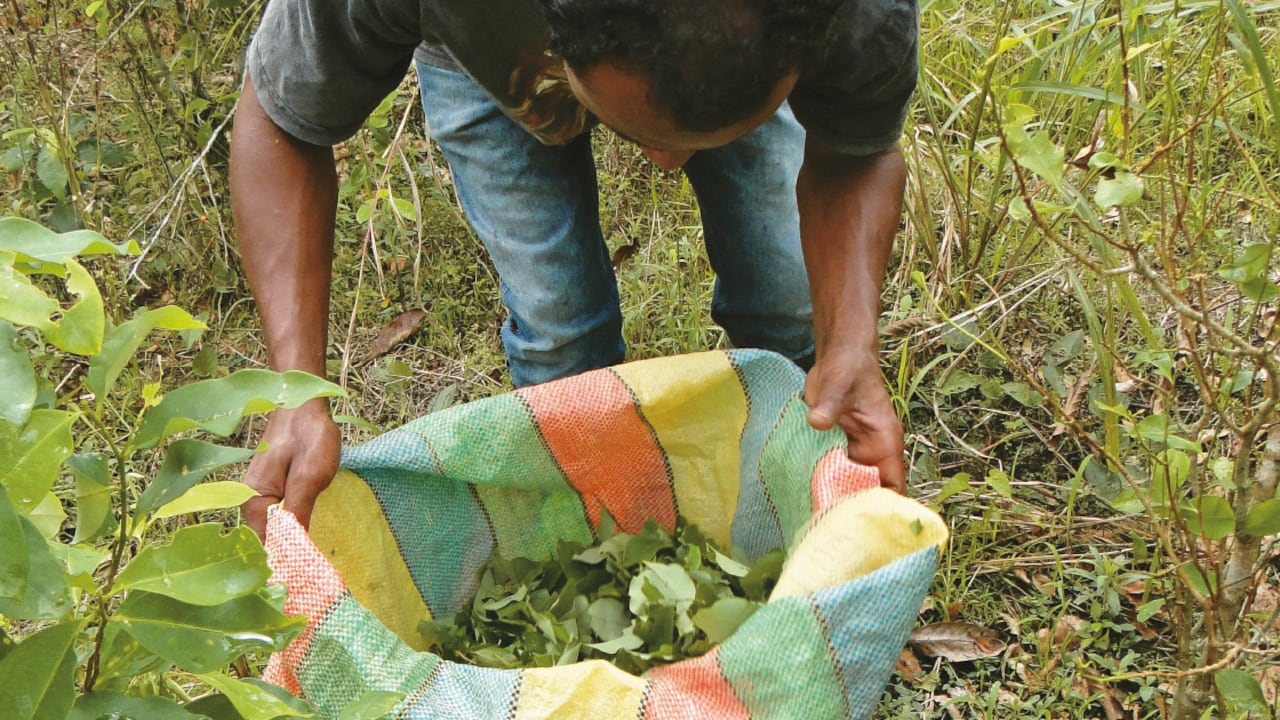 Pese a sus dos décadas de experiencia, Víctor no es de estos. “Los normales cogemos solo con dos dedos. Lo máximo que yo he cogido hasta mediodía son 150 kilos, eso son 12 arrobas”. Por estas le pagan 60.000 pesos, 5000 por cada arroba. Dependiendo de la demanda de mano de obra y de lo constante que sea, se puede ganar entre 180.000 y 300.000 pesos semanales. Es decir, entre uno y dos sueldos mínimos. “Lo que uno coge es exclusivamente para la comida y para pagar lo que debe y queda en las mismas”. Los raspachines son la base de la pirámide de la producción de cocaína y como tales, los que menos dinero reciben, puras chichiguas, en el millonario negocio del narcotráfico.