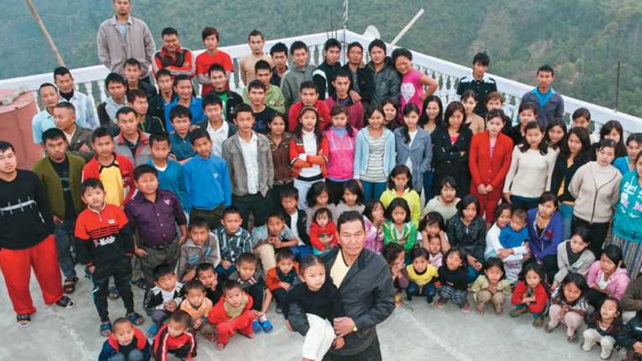 La familia más grande del mundo vive en una casa enorme pintada de morado que se encarama, como una fortaleza, en las siempre verdes colinas de Mizoram. Este estado de India se parece muy poco al resto del país: más que indios, sus habitantes parecen chinos y la religión no es el hinduismo, sino que hay diferentes sectas cristianas.