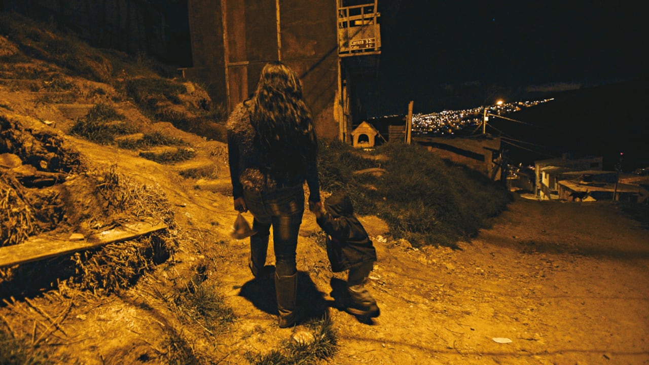 A las 9:32 de la noche, Amanda llega a su pequeña casa de El Oasis, uno de los 30 barrios de Altos de Cazucá, en Soacha. Llega en compañía de Jaime Alejandro, su hijo de 3 años. La casa, prefabricada, de apenas 20 metros cuadrados, queda en la parte más alta de la loma. Tiene cinco espacios mínimos, liliputienses: una salita de entrada desocupada, una cocina con un lavaplatos precario y una cocineta, un baño sin pañetar, otro cuartico vacío y la alcoba principal, con una cama doble y un televisor que la ilumina porque el bombillo se fundió. Es el único lugar de la casa en el que uno se puede sentar. Hay servicio eléctrico pero no hay todavía acueducto. El agua llega a través de unas mangueras de la comunidad pero están rotas, y hace 15 días no recibe el servicio. La jornada ha sido larga, como todos los días, excepto el domingo: se levantó a las 5:00 de la mañana, no pudo lavar la ropa, preparó el desayuno, organizó a su hijo, caminó varias cuadras hasta el paradero de la buseta que los lleva hasta el pie de la loma, atravesó la autopista Sur y volvió a caminar varias cuadras hasta Soacha, hasta la casa de su amiga Julia, que tiene tres hijos y le cuida a Jaime Alejandro por 250.000 pesos mensuales. Dejó allí las botas, se puso zapatos con tacones y tomó otra buseta que la llevó al Siete de Agosto para empezar a recorrer la calles en busca de clientes. Porque Amanda, de 26 años, ejerce la prostitución callejera desde hace doce.
