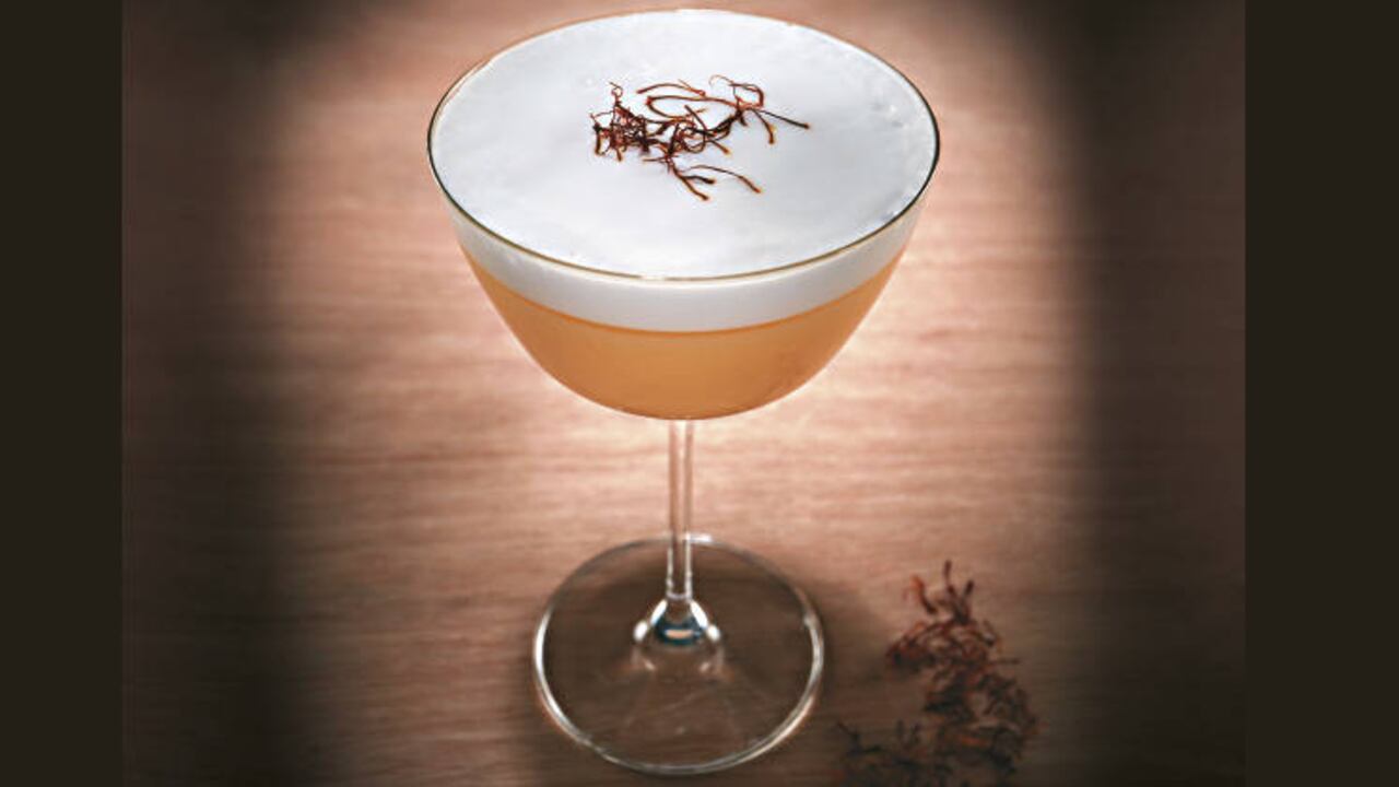 Agregue a una coctelera con hielo dos cucharadas de azúcar de vainilla —la puede hacer mezclando dos tazas de azúcar blanca con las semillas de una vaina de vainilla—; 30 mililitros —o un shot— de syrup de maracuyá; 30 mililitros de zumo de maracuyá; el zumo de medio limón; la clara de un huevo y dos shots —o más si quiere— de vodka. Agite por unos segundos y luego pase la mezcla por un colador. Después, coja un pedazo de cáscara de naranja y “exprímalo” sobre la bebida para bajarle el olor a la clara de huevo. Para darle el toque final, decore con un poco de azafrán.