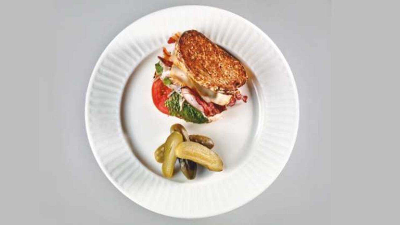 “Después de un día largo de trabajo —los chefs trabajamos hasta muy tarde—, llego a mi casa y me como un yogur griego, un poco de cereal y fruta; algo liviano porque hay que acostarse a dormir pronto. Pero cuando me quiero dar una indulgencia, me hago este sánduche que me lleva feliz a la cama. En la casa no hay tiempo para hacer algo muy elaborado, por eso me gusta prepararlo: es sencillo, no ensucia media cocina y se puede hacer con lo que siempre tengo en la casa: embutidos, quesos, panes, aceite de oliva y vegetales. La verdad, esta mezcla siempre me ha gustado: tiene la grasa buena del pavo y otras grasas no tan buenas, pero muy ricas, que son las de la tocineta y el queso. Ahora, si quiero algo más elaborado prefiero ir al restaurante”.